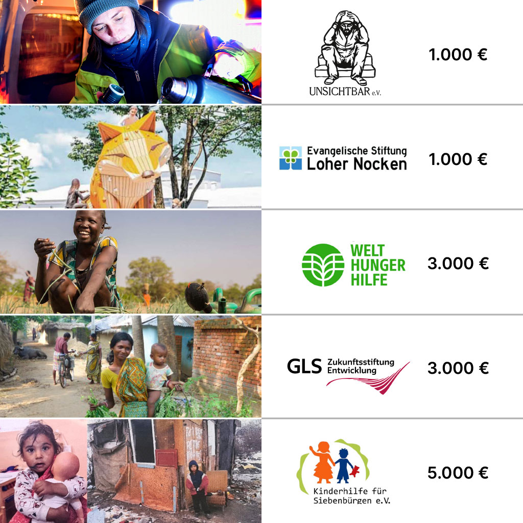 Wir freuen uns, dass wir auch im letzten Jahr wieder Organisationen mit Spenden unterstützen konnten